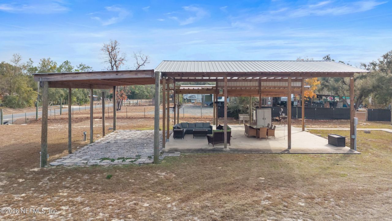 Located in the highly sought after coastal community of Steinhatchee, Florida, renowned for its world class inshore and offshore fishing and scalloping, this high and dry half-acre investment property sits on a paved road in the Steinhatchee Acres subdivision. This property is fully fenced and improved with a 30' x 40' pole barn, a 20' x 36' lean-to and an additional 12' x 30' lean-to, ideal for RV accommodations, covered communal space and storage. The property also includes a 10' x 20' tiny home plumbed with a private water closet and a storage shed. Well, septic, and 200-amp electric service are in place, supplying underground power throughout. Four RV hookups are installed, allowing for immediate short or long term rental potential. A dedicated fish cleaning station with power and water adds strong appeal for anglers and vacation renters. Steinhatchee Acres is conveniently located just minutes from restaurants, marinas, and the public boat ramp, with easy golf cart access throughout the entire community of Steinhatchee.