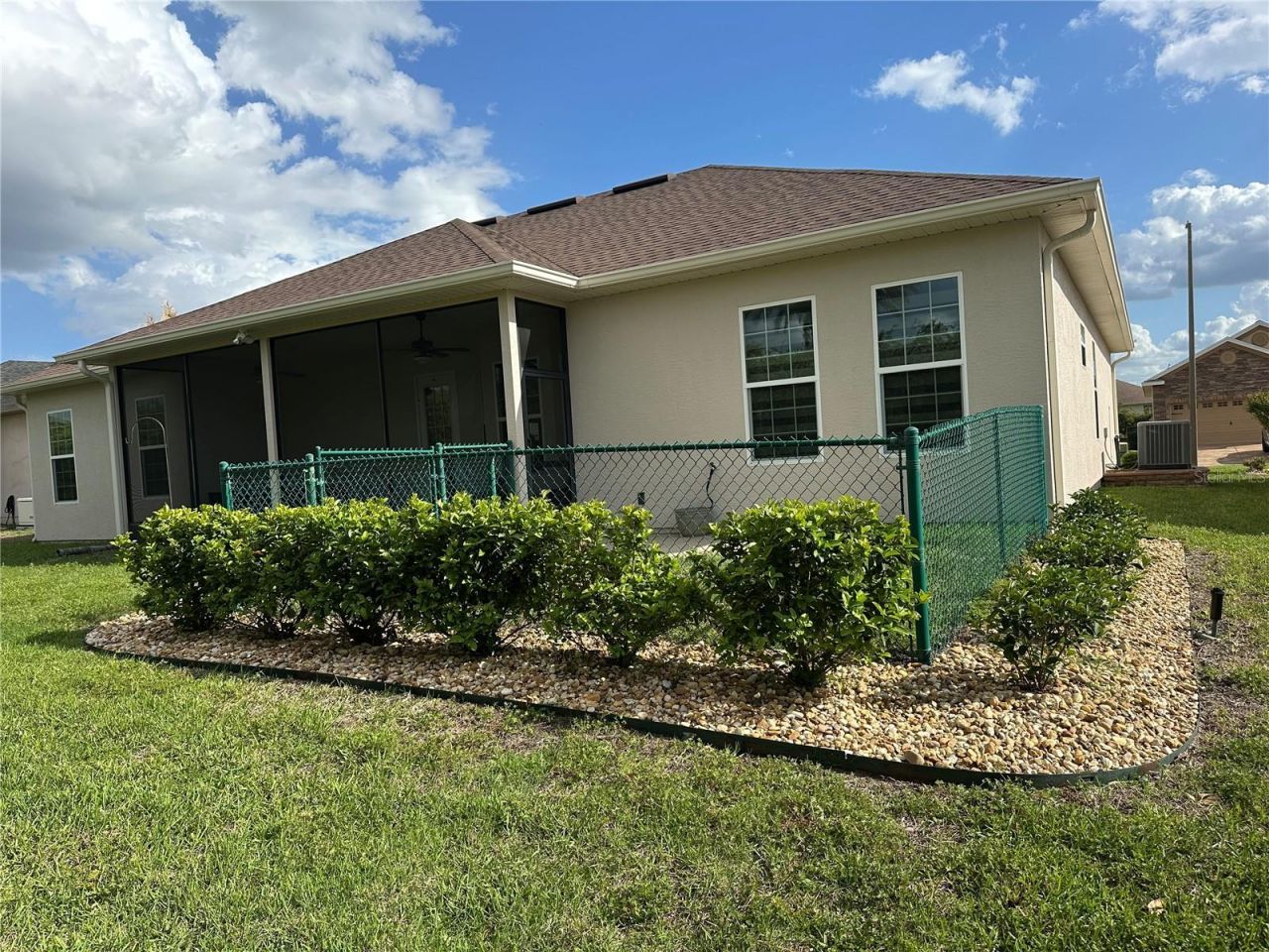 Welcome to STONECREST. This beautifully upgraded CEDAR model home offers 3 bedrooms, 2 bathrooms, and a spacious den, located in the sought-after North Valley of Stonecrest. From the moment you arrive, the curb appeal and attention to detail will impress. This beautiful home this is one of the newer homes in the area and it shows! Step inside and fall in love with the open floor plan designed for both comfort and entertaining. Guests and extended family will appreciate the split floor plan and 2nd bedroom with direct bathroom access. The back yard is very private with room for a pool and your furry friends will enjoy the partially fenced backyard and play area. The kitchen is a chefs dream, featuring solid wood custom cabinets with roll-out shelves, pot drawers, a garbage receptacle cabinet, full-extension drawers, and a large granite breakfast bar and coffee station. Recessed lighting and extra outlets add even more function to this beautiful space. This home is packed with energy-efficient features, including: Two solar thermostat controlled attic fans, attic insulation throughout (including garage), Double-pane tinted windows, Solar tubes in kitchen and owner's suite, Tankless on-demand water heater with remote, insulated garage doors. Additional upgrades include: Exterior painted 5/2025, Plantation shutters, water softener, gutters, utility sink, sealed/painted garage floor, and stone landscaping with a privacy hedgerow. The extended screened lanai (24.9' x 9.3') and 8' x 12' grilling patio make outdoor living a pleasure. Even the front post light is on a convenient wall timer. Enjoy the oversized 2-car garage with additional golf cart garage and high ceilings- and additional storage racks. This gated, deed-restricted, golf community includes: 4 swimming pools (including an indoor saltwater pool & spa), Fitness center, Clubhouse with casual dining and entertainment, 18-hole championship golf course, Over 90 clubs & activities, Pickleball courts and softball field, Golf cart access to shopping and more. If you're seeking a luxury, energy-efficient home in a private amenity-rich community, welcome to this fantastic home STONCREST. Where neighbors become lifelong friends!