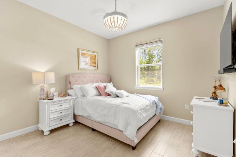 Welcome to this stunning 2022 Palm Coast residence, a move-in ready, solar-powered home that perfectly blends modern design, energy efficiency, and luxurious upgrades. From the moment you step inside, you'll be captivated by the open, light-filled layout with elegant wood-look porcelain tile flooring, canned lights on dimmers, and surround sound by Definitive Technology in the living area, creating the perfect setting for everyday living and entertaining. The heart of the home is the beautifully designed kitchen, showcasing quartz countertops, a spacious center island, subway tile backsplash, 42-inch shaker cabinets, stainless steel appliances, including a refrigerator that makes craft ice, and a Kinetico water filtration system. The kitchen flows seamlessly into the expansive living area and out through sliding glass doors to the extended lanai with pavers. Complete with a covered grill area and Alexa-commanded bar lights, this space is designed for unforgettable gatherings. The fully fenced backyard with white vinyl fencing and gate offers privacy and plenty of room to enjoy the outdoors. The oversized primary suite is a private retreat with a tray ceiling, a spa-inspired bathroom featuring dual quartz vanities and a walk-in shower, and a custom walk-in closet with built-ins. A private guest suite with its own bathroom provides comfort for visitors, while additional bedrooms offer generous space and double-door closets. An office/flex room adds versatility to fit your lifestyle needs. Smart home technology is found throughout, with Google smart features for convenience and energy-efficient Low-E double-pane windows that bring in natural light while helping reduce utility costs. The home also includes an indoor laundry room with quartz counters, shaker cabinets, sink, and washer and dryer. Set in the desirable Palm Coast area, just minutes from beaches, parks, shopping, and dining, this home delivers the perfect combination of luxury, comfort, and sustainability. Whether you're looking for a stylish retreat, a family-friendly haven, or an eco-conscious lifestyle, this home checks every box. All information deemed accurate but cannot be guaranteed. Solar panels paid off.