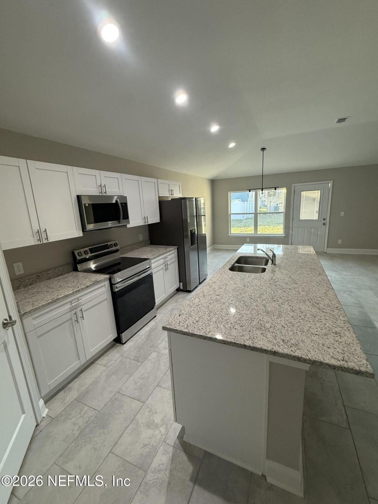Be the first to live in this brand new 4 bed, 2 bath home in the desirable Liberty Square community. Built with quality materials and attention to detail, with no shortcuts taken. The open layout offers a spacious living area with tile flooring in the main areas and plenty of natural light. The kitchen features white shaker cabinets, granite countertops, stainless steel appliances, and a large island.The primary bedroom includes a tray ceiling, and the primary bathroom features a double vanity with granite counters and a tiled walk-in shower.Liberty Square offers a community pool and park. Conveniently located near Cecil Commerce Center with quick access to I-10 and First Coast Expressway (SR 23). About 10 minutes to Oakleaf Town Center for shopping and dining, with Publix just 3 minutes away for quick grocery runs.Final cleaning & additional photos coming soon.