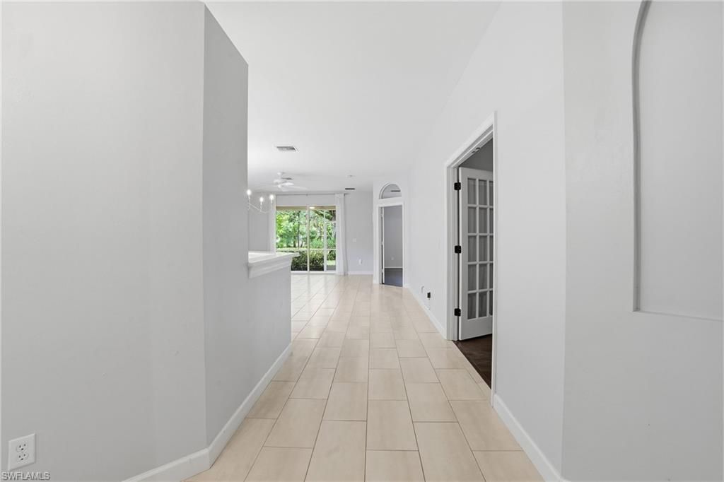 Nestled within the guard-gated community of Stoneybrook at Gateway, 12517 Stone Valley Loop presents a refined, low-maintenance lifestyle with the perfect balance of comfort, style, and privacy—ideal for buyers seeking an elevated villa experience in Southwest Florida. This thoughtfully updated 2-bedroom residence with a spacious, versatile den and 2 full bathrooms offers an open, inviting layout enhanced by tasteful fixtures, neutral finishes, and abundant natural light. The living and dining areas flow effortlessly, creating a welcoming space for both everyday living and entertaining. Recent updates and clean architectural lines lend the home a fresh, timeless appeal. The kitchen is centrally positioned, overlooking the main living areas and designed for both function and connection—ideal for hosting or relaxed daily routines. Sliding glass doors extend the living space to a screened lanai, where tranquil views of lush tropical landscaping and a private greenbelt setting create a serene backdrop for morning coffee or evening relaxation. The primary suite is a peaceful retreat featuring a walk-in closet and an en-suite bath with dual vanities and a walk-in shower. A generously sized guest bedroom and a large den with French doors provide flexibility for a home office, media room, or additional guest space. Completing the home is an attached two-car garage, offering convenient parking, additional storage, and everyday ease—an essential feature for full-time or seasonal living. Residents enjoy a true resort-style lifestyle, with HOA services covering exterior maintenance and landscaping for effortless, lock-and-leave living. Community amenities include a clubhouse, resort-style pool, fitness center, tennis and basketball courts, and scenic walking trails woven throughout the neighborhood. Ideally located near Southwest Florida International Airport, JetBlue Park, shopping, dining, and major commuter routes, 12517 Stone Valley Loop offers the rare opportunity to enjoy a gated community lifestyle where comfort, convenience, and refined living come together seamlessly.