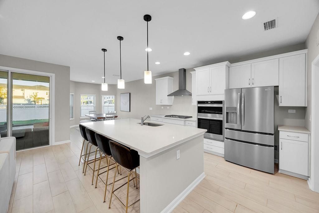 Welcome Home to this impeccably updated BETTER THAN NEW 4-bedroom, 3-bath single-family home in Silverleaf that features an abundance of natural light in the open living/dining floorplan. Triple Split bedroom plan with primary and 2 guest rooms on the first floor and a private upstairs bedroom with en-suite bath ideal for guests, in-laws, or a versatile bonus/playroom. This home has a large backyard with privacy fence and no direct rear neighbor, a 2-car garage, and natural gas service, a screened-in patio for seamless indoor-outdoor living, a custom built-in bar with wine refrigerator, and a gorgeous built-in wall unit with electric fireplace. Designed for entertaining and comfortable everyday living, this home delivers style, function, and privacy in a truly turnkey setting.