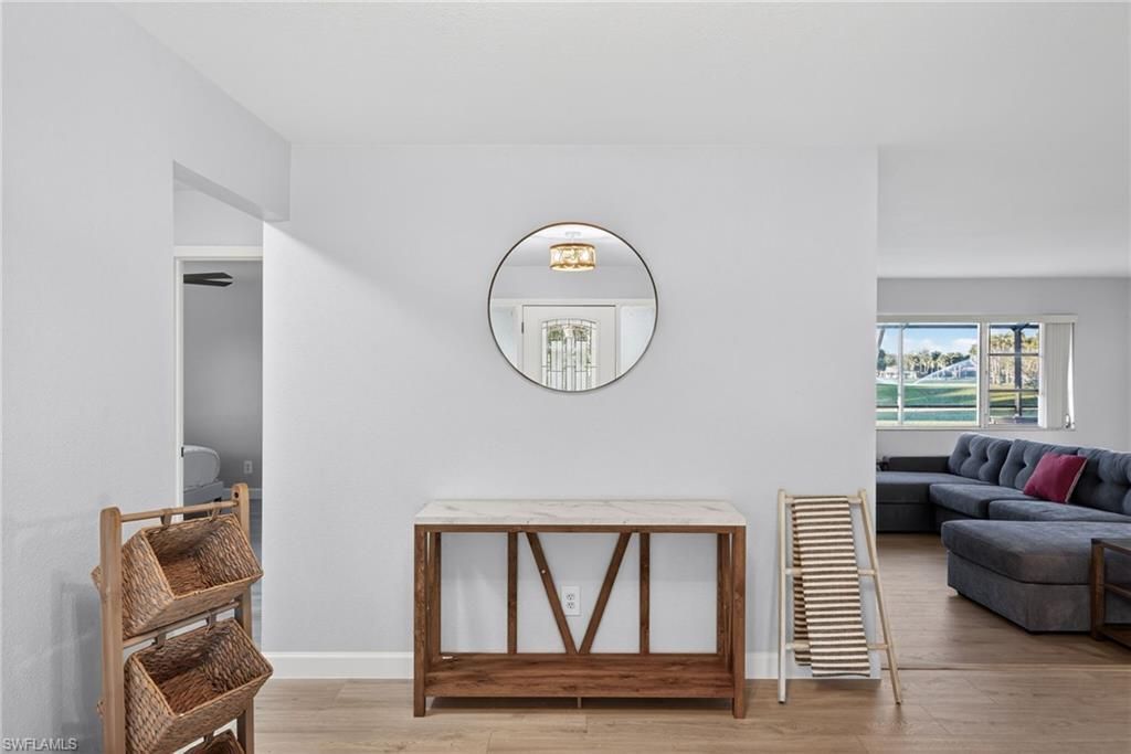 Welcome to a beautifully maintained golf course home offering stunning views, a private screened pool, and valuable updates throughout. Perfectly positioned along the fairway, this property provides peaceful, wide-open green space views with no rear neighbors, creating a private and serene setting ideal for enjoying Florida’s year-round sunshine. The expansive screened lanai and pool area is designed for true Florida living. Whether you’re enjoying your morning coffee overlooking the course, entertaining guests in the evening, or relaxing poolside on a quiet afternoon, this outdoor space delivers both comfort and privacy. The screened enclosure allows you to enjoy the view while maintaining a clean and comfortable environment. Inside, the home features a thoughtfully renovated kitchen that blends modern style with everyday functionality. Bright white cabinetry, updated hardware, sleek countertops, subway tile backsplash, and stainless steel appliances create a clean and contemporary feel. The kitchen flows seamlessly into the main living and dining areas, making it perfect for both entertaining and daily living. The spacious floor plan offers a comfortable layout with generous living areas filled with natural light. Large windows and sliding doors maximize the beautiful golf course views and enhance the open feel of the home. The split-bedroom design provides privacy, making it ideal for families, seasonal residents, or hosting guests. Major updates provide additional peace of mind, including a new roof installed in 2018. This significant improvement adds long-term value and reduces future maintenance concerns for the next owner. The home is being sold partially furnished, offering added convenience and making it truly move-in ready. Whether you are searching for a primary residence, seasonal retreat, or investment opportunity, this property presents flexibility and immediate comfort. Located in a desirable golf course community in North Fort Myers, this home combines scenic surroundings, functional updates, and relaxed Florida living in one complete package. Golf course views, a private screened pool, renovated kitchen, 2018 roof, and partial furnishings — this property is ready for its next owners to move in and start enjoying everything it has to offer.