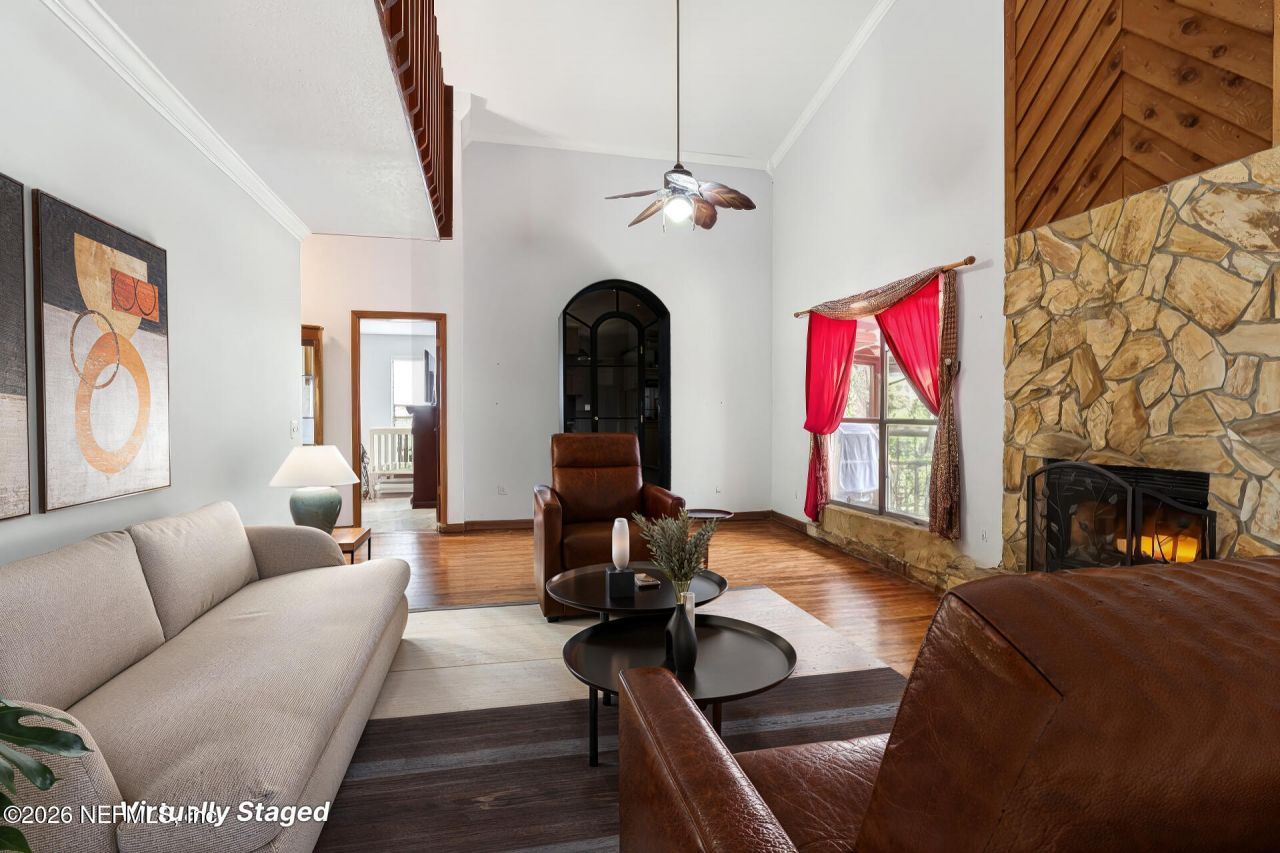 Set on a sprawling 2.6-acre lot with no HOA or CDD, this 3 bedroom, 2 bathroom home offers space, privacy, and versatility.Inside, soaring ceilings greet you in a spacious living room, anchored by a stunning stone fireplace that serves as a welcoming focal point. The kitchen was updated in 2020 with replaced cabinets, new hardware, and ample storage, with space for casual dining and a formal dining room adjacent for gatherings and special occasions. Newer appliances including a range, disposal, and dishwasher were installed in 2024.The home's private split bedroom layout includes a generous primary suite with a walk-in closet, ensuite bathroom with dual vanity and a jacuzzi whirlpool tub with a shower. Two additional bedrooms share a full bath. Plumbing was updated in 2020, and the bathrooms were also refreshed with new hardware. Upstairs, a versatile loft area can be used as a home office, additional living space, or even a fourth bedroom. Other updates include the hot water system replaced in 2024, a new A/C-furnace installed in 2024, and a newer roof in 2022.Outside, the expansive screened lanai and yard deck provide plenty of space to relax and entertain. The very generous fenced yard offers privacy and room for outdoor activities. Additional highlights include a 2-car garage, detached garage, and ample parking for multiple vehicles.This property combines country-style space with modern comfort, all conveniently situated for easy access while still providing the privacy of a large, open lot.