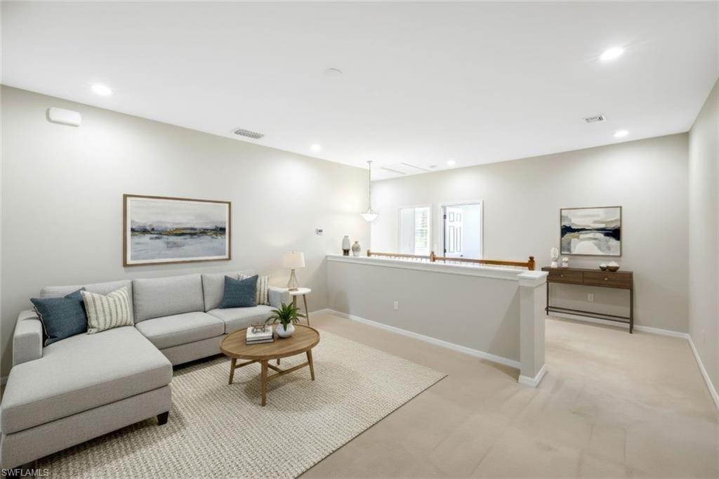 Enjoy spacious, low-maintenance living in this large 3-bedroom plus loft, 2.5-bath townhome that truly lives like a single-family home, located on a quiet cul-de-sac. Designed with both comfort and flexibility in mind, the home features an attached 2-car garage, an extended lanai overlooking a peaceful preserve, and a bright, open layout ideal for everyday living or entertaining. The generous primary suite is a standout with a large bathroom and oversized walk-in closet, while the upstairs loft offers the perfect space for working from home, a playroom, or additional living area. Located in the highly desirable, family-friendly Bella Terra community, this home is just a short walk or bike ride to resort-style amenities including a spectacular pool, fitness center, pickleball, tennis and basketball courts, and a vibrant clubhouse. Perfect for a growing family or as a strong investment rental, this residence offers unbeatable convenience with close proximity to Miromar Outlets, Hertz Arena, FGCU, RSW Airport, and a wide variety of shopping, dining, and entertainment options. Space, location, and lifestyle come together seamlessly in this exceptional Estero opportunity. Select images include virtual staging for illustrative purposes.