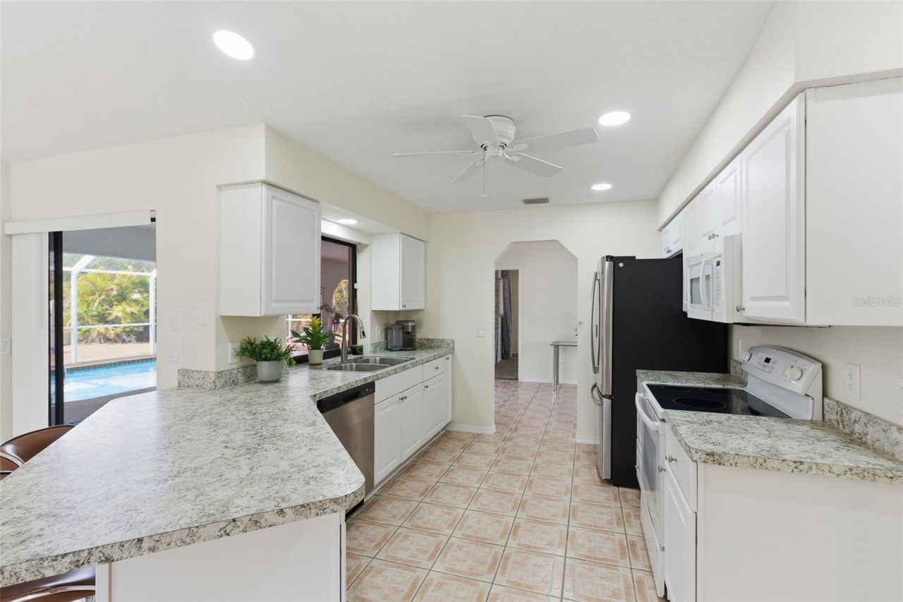 Welcome to this Charming Waterfront 3 Bedroom, 2 Bathroom, 2 Car Garage, pool home with a Family room, situated on an OVERSIZED CORNER LOT in Port Charlotte. NO HOA FEES & NO FLOOD REQUIRED! CLICK ON THE VIRTUAL TOUR LINK 1 FOR THE VIDEO AND VIRTUAL LINK 2 FOR THE 3D TOUR. Nestled along a freshwater canal with 103 feet of water frontage, this home offers a serene setting with plenty of potential. Step inside to find a spacious living room that seamlessly flows into the dining area, creating an inviting space for entertaining family and friends. The kitchen comes complete with all appliances, abundant countertop space, a convenient service window to the lanai, a breakfast bar, and a cozy dinette area. Adjacent to the kitchen, the family room expands the living and entertaining space, and features a glass slider leading out to the lanai. The master bedroom is generously sized and includes a walk-in closet and an en-suite bathroom with a walk-in shower and a single sink vanity. The guest bedrooms are thoughtfully arranged on a split floor plan, ensuring privacy, with walk-in closets and a shared bathroom nearby with lanai access. The covered lanai is the perfect spot to sip your morning coffee or unwind with an evening beverage, with plenty of room for entertaining. Enjoy a private screened pool with plenty of room for soaking up the sun from the pool deck. The large backyard is fully fenced and landscaped, providing plenty of room for gardening, outdoor activities, or expanding your entertainment space. Plus, you have access to the freshwater canal, perfect for fishing and enjoying the outdoors. 2023 ROOF - 2023 FASCIA/SOFFITT/GUTTERS - 2018 UPDATED ELECTRICAL PANEL - UPGRADED PEX WATER LINES - 2022 HOTWATER HEATER & SHUT OFF VALVES - - Conveniently close to US-41, 776 & I-75 for easy access to local favorites such as Fishermen's Village, Sun Seeker Resort, Ponce De Leon Park, shopping & boutiques, fine & casual dining, and LIVE entertainment. Schedule your showing TODAY!