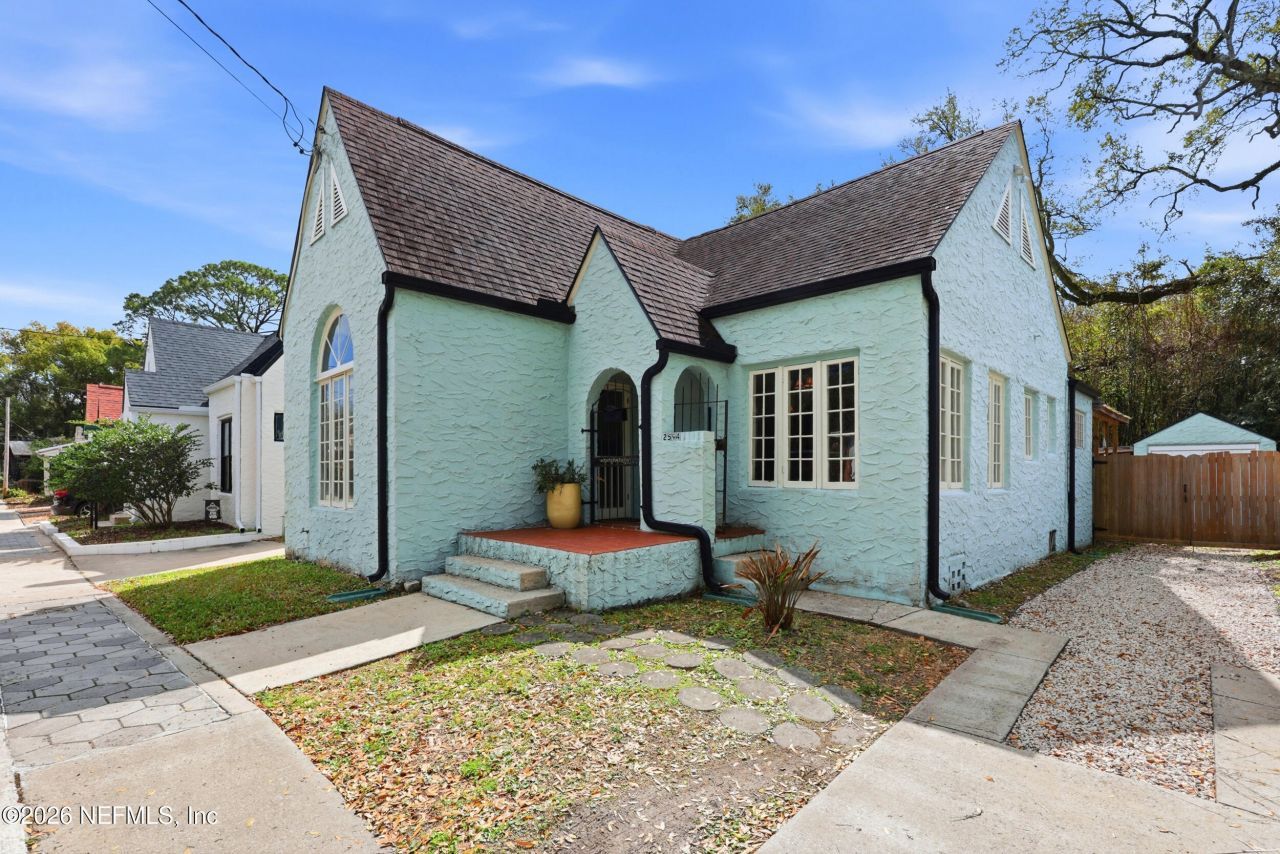 Welcome to 2594 Haldumar Terrace, a character filled 1928 bungalow in Jacksonville that has been thoughtfully updated while preserving the charm that makes homes like this so special. Set on a manageable .12 acre lot, this 2 bedroom, 1 bath home offers 1,260 sqft of warm, inviting living space.Inside, you'll fall in love with the 12 foot barrel ceilings, original style details, and a cozy fireplace anchoring the living room. Beautiful wood floors run through the main living areas, hallways, and bedrooms, adding timeless appeal. The kitchen features granite countertops and stainless steel appliances, creating a functional space with a classic look. The spacious primary bedroom offers two walk in closets plus French doors that open to a 14x14 covered terrace, perfect for morning coffee or evening downtime.Major updates include a full re roof of both the home and detached garage in 2018, plus an HVAC change out and water heater replacement in 2019. Out back, enjoy a fully fenced yard with a newer paver patio ideal for entertaining, along with a 1 car garage and an oversized covered carport for extra parking and storage.If you're looking for a home that blends historic charm with modern comfort, this one is a standout.