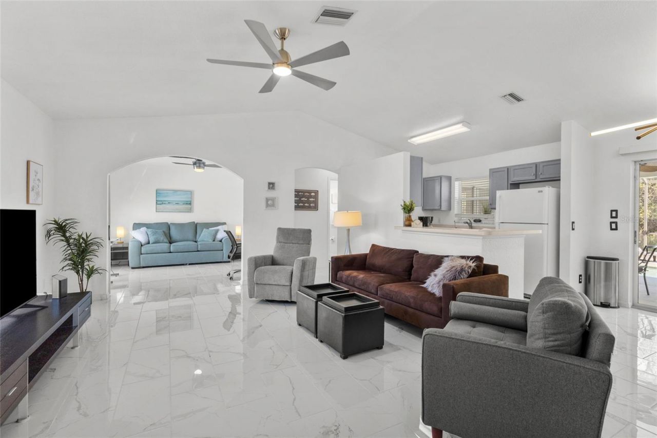 Available 4/3/2026. Beautifully furnished 2-3 bedroom, 2-bath pool home located in a quiet and walkable North Port neighborhood off N. Salford Blvd, convenient to nearby shopping along Price Blvd and US-41, I-75, and Gulf beaches. Designed for comfortable Florida living, this inviting home features polished white marble-look tile flooring throughout and a bright, open layout. Sliding doors open to a screened lanai and solar-heated pool overlooking a private backyard with natural landscaping and no rear neighbors. The flexible third bedroom with closet and barn doors works well as a guest bedroom or home office. Additional features include a two-car garage, full-size washer and dryer, alarm system, high-speed internet, and generator for backup power. Lawn and pool service are included and tenant pays electric. Available monthly or longer term. Seasonal rates are $5,500 per month December through April with a three-month minimum and $3,200 per month May through November; off season price is for 1 month, with rates negotiable for longer stays. A 13% tax applies to leases under six months, with no tax on longer leases. Non-smoking property. Pets considered with approval; fees or deposits may apply.