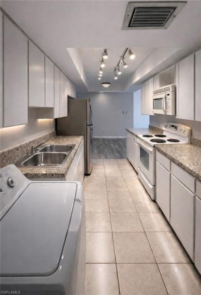 Nestled on the second floor (elevator available), this quiet corner unit provides a picturesque view that will leave you in awe. The pet-friendly community ensures that your furry companions can also enjoy the beauty of this remarkable location. Whether you are looking for a permanent residence, a seasonal getaway, or an investment opportunity, this place checks all the boxes. The upgrades includes an A/C, Water Heater, and Luxury Vinyl Plank Flooring installed 2021, a sleek Stainless Steel Refrigerator with Ice Maker, a convenient Garbage Disposal, and a Washer/Dryer inside unit. The kitchen is adorned with stunning granite countertop as well. Also features a glass-enclosed lanai givnig it a nice touch. Ample closet space in the bedrooms and an additional storage locker just steps from your front door, you will have no shortage of space to keep your belongings organized. Water/sewer & cable are included in the Association dues, making your life hassle-free. Assigned carport parking and ample guest parking ensure that you and your visitors will never have to worry about finding a spot. And when youre in the mood for relaxation, the pool and spa are just a short walk away, offering a serene retreat. To top it all off, the Lakewood Country Club offers an optional membership that grants you access to an 18-hole golf course, as well as amenities like Pickle-ball, pool, and tennis courts. And if you ever crave the vibrant energy of downtown Naples, shopping, or the soothing embrace of the beach, rest assured that they are all within a short distance. In conclusion, living on Lakewood Golf Course is not just about finding a home-its about embracing a lifestyle that combines elegance, tranquility, and convenience. Dont miss out on this opportunity to experience the art of writing your own story in this remarkable community.