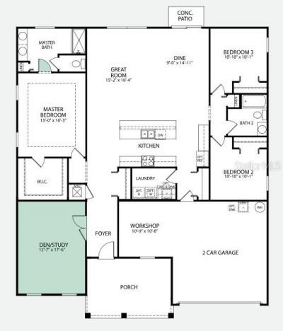 Pre-Construction. To be built. Fall in love with the Wilmington -a refined blend of architectural detail, modern finishes, and thoughtful design, set in Inverness, Florida, just 40 miles from Ocala, where natural surroundings and everyday convenience intersect seamlessly.Curb appeal makes an immediate impression with a covered front porch, stone-accented exterior, professional landscaping, and an 8-foot full-lite front door that establishes a polished first impression. Inside, a bright open foyer with 9'4 flat ceilings enhances the sense of scale and flow, leading to a private den with double French doors, ideal for flexible use. The home opens into a spacious open-concept great room, filled with natural light and enhanced by six LED flush-mount lights, creating an inviting and expansive living area. This central space connects seamlessly to the chef-inspired kitchen, showcasing quartz countertops, a large central island, and a full suite of kitchen appliances, including an Estra side-by-side refrigerator. An open dining area completes the layout, while access to the rear patio extends living outdoors for effortless Florida-style enjoyment.A thoughtfully designed split-bedroom layout provides added privacy, with the primary suite serving as a tranquil retreat. The suite features a spacious walk-in closet and a spa-inspired bath with a walk-in tiled shower, dual sinks, and a linen closet, blending comfort with everyday functionality.Additional highlights include architectural shingles and integrated smart-home features, such as a Ring video doorbell, smart thermostat, keyless entry smart door lock, and Deako switches, delivering modern convenience and peace of mind. A two-car garage with workshop space adds flexibility for storage, hobbies, or projects.The Wilmington is designed for effortless living and easy entertaining, with elevated finishes and cohesive details throughout-a home that feels polished, functional, and distinctly inviting from the moment you arrive. Call us today to schedule a private tour!