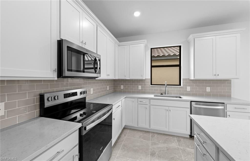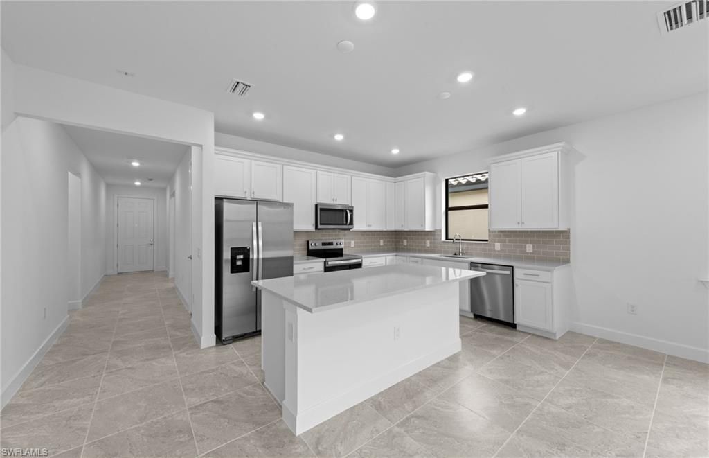 Welcome to this beautifully appointed Highgate floorplan, offering 4 spacious bedrooms and 2 bathrooms in a thoughtfully designed, open-concept layout. This home is loaded with upgrades that enhance both style and functionality. At the heart of the home, the kitchen features white cabinetry with chrome pulls, quartz countertops, and a sleek gray subway tile backsplash, combining timeless design with modern convenience. The main living areas are finished with elegant 22x22 tile flooring, while the bedrooms are comfortably carpeted. The owner’s suite boasts a heavy glass shower door, adding a touch of luxury to your daily routine. Additional highlights include 8 interior doors, 5" baseboards, and a laundry room with a built-in sink for added practicality. Enjoy outdoor living year-round on the extended covered lanai, and take advantage of the 4 garage extension, perfect for extra storage or a workspace. This home offers the perfect blend of comfort, style, and smart upgrades—ready to welcome you home. Experience resort-style living with access to a 14,000 sq. ft. clubhouse, a lagoon-style swimming pool, a fitness center with an aerobics room, and a kids wing & game room. The community also boasts 2 Har-Tru tennis courts, 4 pickleball courts, 2 bocce courts, and an 18-hole championship golf course designed by Davis Love III. With an on-site activities director and over 15 miles of scenic trails, this vibrant community offers something for everyone. Dont miss this exceptional opportunity!