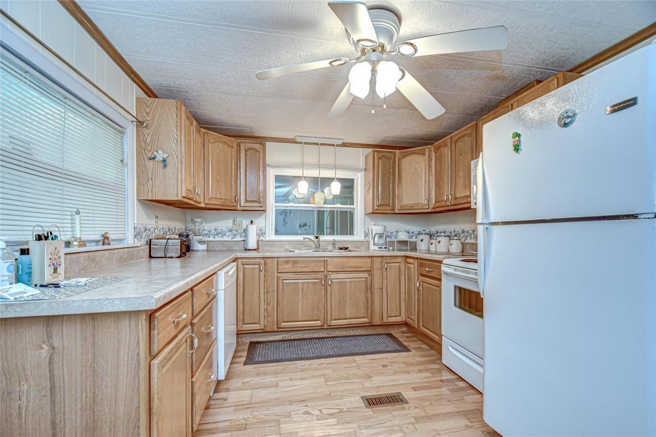 WELCOME HOME: Charming 2 bedroom, 2 bath double wide in a desirable 55+ community with no lot rent and a low yearly HOA fee that even includes your water! This well-kept home offers plenty of living space with an air-conditioned front Florida room, a side screened porch for relaxing, and a spacious dining area featuring a built-in buffet. Updated kitchen comes furnished with everything you need to get started, while the HVAC was newly replaced in 2023 for peace of mind. This home comes furnished! Enjoy extra storage with a utility room with shop at the end of the carport, and an additional shed. Larger pets are welcome, and you'll appreciate that the lots here are bigger than most. The community itself is well maintained and offers a clubhouse and activities for an active lifestyle. Conveniently located near restaurants, shopping, and everyday necessities, this home is the perfect spot to enjoy the Florida sunshine!