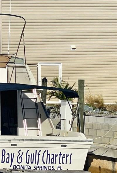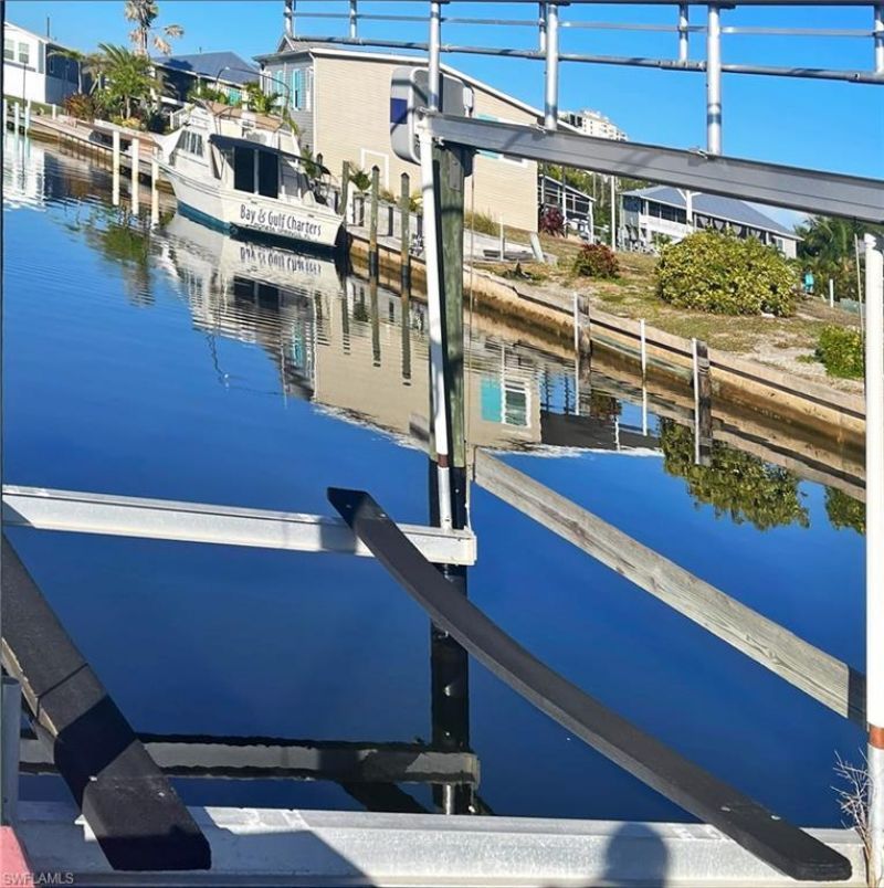 THIS VACANT READY TO BUILD PROPERTY HAS GULF ACCESS, BE IN ESTERO BAY WITHIN 10 MINUTES. THE BOAT LIFT NEEDS ELECTRICAL PWER RECONNECTED. A CUSTOM HIGH WIND RATED COVER FOR KEEPING THE SUN AND RAIN OFF YOUR BOAT WILL BE PROVIDED IN THE SALE. THE CANAL SIDE FINISHED CONCRETE PAD AFFORDS ETRA SPACE FOR EMBARKING/DISEMBARKING BOATING SUPPLIES AND PATIO TABLE AND CHAIRS WATCH THE MANATEES AND OR DOLPHINS WHEN THEY SWIM IN FROM THE GULF FROM YOUR OWN DOCK FOR YOUR OWN CONVENICE THE DOCK HAS ALSO BEEN PLUMBED FOR WATER AND ELECTRICAL PWER OTHER WATERFRONT LOTS IN THE COMMUNITY DO NOT OFER A CONCRETE FINISHED DOCK BUILD A NEW TRADITIONAL HOME MODULAR HOME OR A MANUFACTURED HOME ON THE 50 X 75 FT.