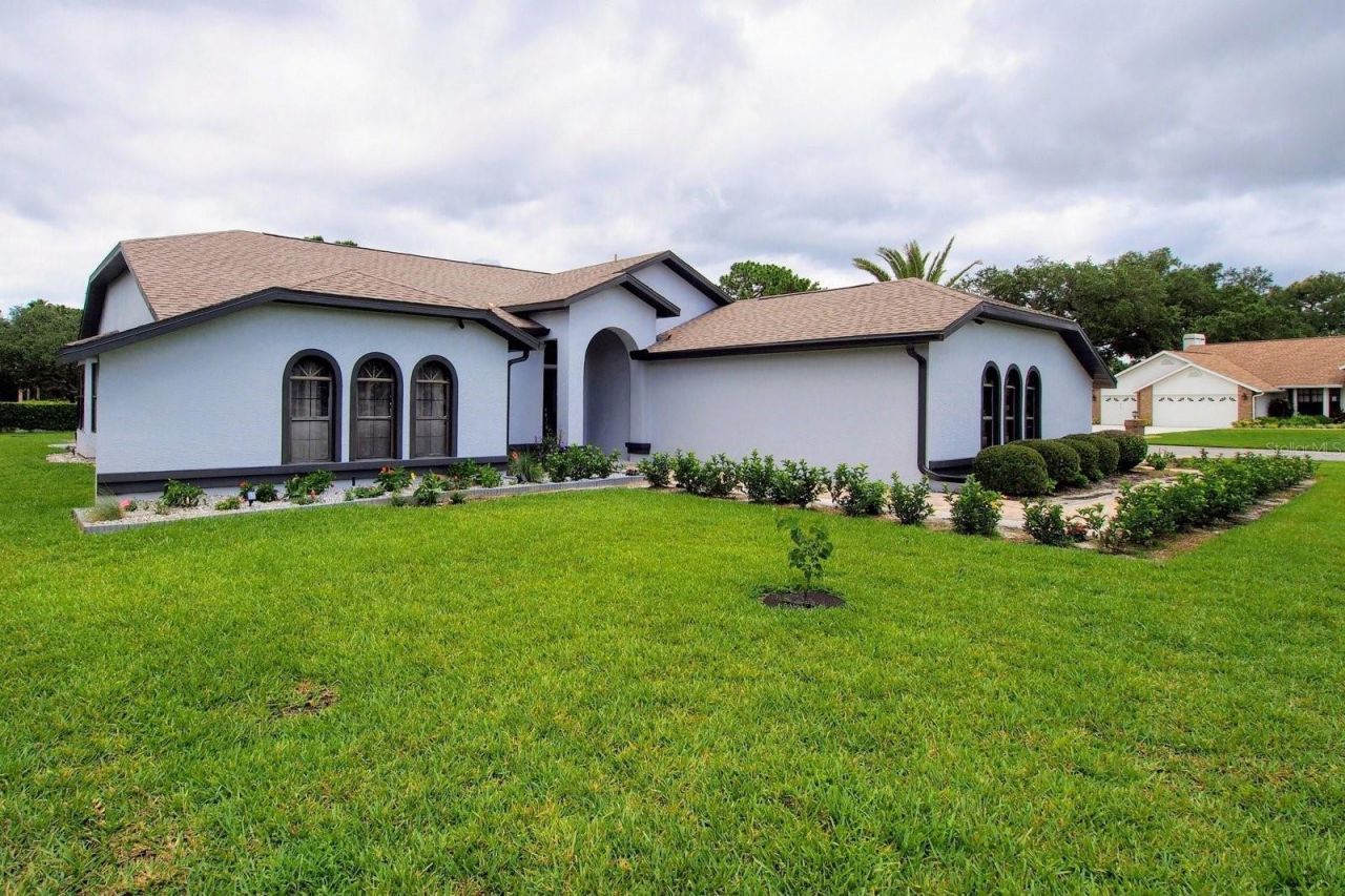 One or more photo(s) has been virtually staged. Welcome to this gorgeous and spacious 3 bedroom, 3 bathroom oasis nestled on a just-under 1/2 acre corner lot within a secure, private, and gated country club community. This thoughtfully designed home combines spaciousness with outstanding functionality and style. Enjoy the large, open living room with soaring ceilings and a cozy decorative fireplace. Triple disappearing' sliders lead directly to the covered 25x10 lanai. Throughout the rest of the house you'll find ceramic tile or polished hardwood laminate flooring. The master suite is a tranquil haven, featuring direct access to the lanai, dual closets and an ensuite bathroom with a garden tub, separate shower and a twin vanity with granite counters. Two additional bedrooms with walk-in closets and an updated guest bathroom provide plenty of space for family or guests. At the heart of this home is the screened outdoor patio, boasting a large 30x15' heated pool and spa, a paver deck and a covered lanai with an outdoor kitchen ideal for the ultimate al-fresco living. A bonus pool shower bathroom keeps wet swimsuits out of the house! The entire home has been recently renovated including fresh paint inside and out, resurfaced pool, a new pool heater and pump,re-screened lanai, new carpet in the living room, upgraded lighting and upgraded landscaping. Phew! Located in the prestigious Glen Lakes subdivision, you'll have access to a wide array of fantastic amenities including *18-Hole championship golf course *full service pro-shop *Aqua-driving range *35,000 Sq Ft clubhouse with 2 restaurants and bar *6 clay tennis courts *4 pickleball courts *Junior Olympic-size pool *Fitness center equipped with modern top-tier gear *an active social program. You may never want to leave! Note: Social membership is optional and additional fees will apply. Multiple services are included with the monthly rent: Yard care, pool care, TruGreen lawn services, internet access and basic cable (Spectrum), and trash pickup. You just pay for water, electric and any propane used to heat the pool. Don't miss this opportunity to enjoythe best of the Florida lifestyle in a beautiful home with incredible amenities. Contact us today to schedule a viewing. Several photos have been virtually staged to illustrate potential furniture layouts.