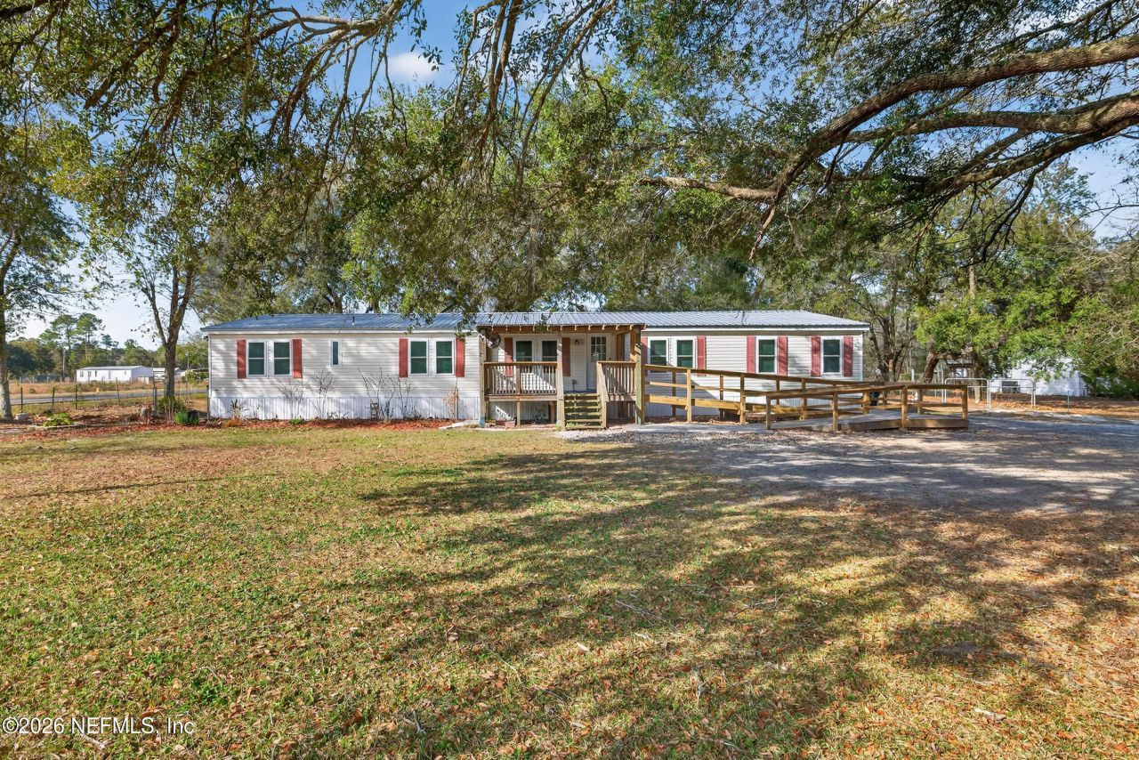 1 ACRE CORNER LOT in Fernandina Beach! Spacious 4 bedroom, 2 bathroom PLUS FLEX SPACE home with a desirable layout and room to spread out. Inside you'll find a LARGE BRIGHT KITCHEN with an ISLAND, STAND UP FREEZER, and separate refrigerator that open to the dining room. The LARGE LIVING ROOM w/ mounted TV provides room for everyone to gather and relax. The bonus flex space is perfect for a home office, playroom, or second living area. Newer flooring throughout and a primary suite with an oversized walk-in shower and a stacked LG WASHER AND DRYER. Outside offers even more possibilities with a SHED and SHIPPING CONTAINER for additional storage. Plenty of room for GARDENING, hobbies, toys, or simply enjoying the space that a full acre provides. Minutes to the beach and top rated Nassau County schools, shopping, dining and more. This is the home you have been looking for.