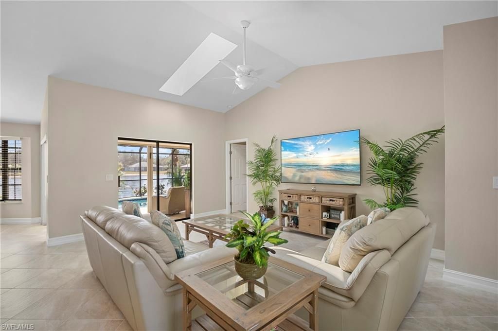 ONE-OF-A-KIND FULLY RENOVATED HOME in the highly sought-after Cypress Chase community, offering true LUXURY FINISHES, major system upgrades, and peaceful preserve views with highly desirable southern rear exposure. This home has been thoughtfully remodeled from top to bottom. Big-ticket updates include a new roof with skylights, 16 Seer 3-ton multi-stage Trane A/C, whole-home re-pipe, new 50-gallon water heater (Feb 2026), and added soundproofing for enhanced insulation and comfort. The heart of the home is a beautifully designed chef’s kitchen that’s both functional and impressive. It features EXOTIC GRANITE countertops, a bold ITALIAN TRAVERTINE BACKSPLASH, pot filler with filtration system, premium Samsung appliances, and custom white cabinetry with soft-close drawers and pull-outs. It’s a space that truly brings everything together. Both bathrooms feel like private retreats, finished in custom Italian Blanca travertine recessed mosaics with travertine pencil accents and seamless glass enclosures for a clean, spa-like look. Throughout the home you’ll find 5¼” solid wood trim, remote-controlled ceiling fans, CUSTOM BLINDS, and upgraded finishes that add warmth and character. Crazy Horse flagstone imported from Arizona creates a striking custom feature that extends from the backyard all the way to the lake. Step outside to a beautifully updated pool area featuring a solar-heated pool with a Hayward multi-stage pump, a fully repainted pool cage, new pool super gutter installed during the remodel, and complete re-screening just two years ago. The yard has been professionally redesigned with tropical landscaping, privacy hedges, a new Rain Bird irrigation system, and recessed lighting with dimmers to create the perfect evening setting. The southern rear exposure overlooks a protected 30-acre preserve with fountain views, offering privacy and a peaceful backdrop every day. Residents also enjoy access to the community clubhouse, heated pool, and viewing pier overlooking the fountain and preserve. Additional features include a fully enclosed, rainproof storage space with a solid concrete floor — ideal for yard equipment, tools, or extra storage needs. The clubhouse offers a full kitchen, restrooms, and a covered gaming and party area with multiple poolside lounge chairs and umbrellas, creating a perfect setting for gatherings and rel