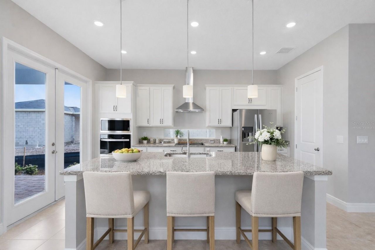 One or more photo(s) has been virtually staged. This stylish 4-bedroom, 3.5-bath home with a full 1-bedroom, 1-bath garage apartment is set in Lake Nona's most sought-after community of Laureate Park. Offered at nearly $100,000 below current builder pricing for the same Dream Finders Mason model with garage apartment, this home presents a rare opportunity to secure new construction at exceptional value. The welcoming blue exterior and covered front porch create instant curb appeal, leading into a bright, open interior filled with natural light. The main level features seamless living, dining, and kitchen spaces with neutral tile flooring throughout. The chef's kitchen showcases white shaker cabinets, quartz countertops, stainless steel appliances, a sleek vent hood, and a spacious island with bar seating. French doors open to a private courtyard-style patio, ideal for entertaining and indoor-outdoor living.Upstairs, the owner's suite feels like a true retreat with a dual-sink vanity, quartz counters, generous storage, and a large frameless glass shower. Two additional bedrooms, a full bath, and a versatile loft complete the second floor, offering flexibility for family, guests, or a home office. The detached garage apartment includes a full kitchen, living room, bedroom, and bath, making it perfect for guests, multigenerational living, or rental income potential.Laureate Park isn't just a neighborhood, it's a lifestyle. Enjoy the Aquatic Center, resort-style pools, LP Fit gym, playgrounds, and over 44 miles of trails. Located minutes from Medical City, Nemours, the VA Hospital, Lake Nona Town Center, dining, shopping, Orlando International Airport, USTA National Campus, theme parks, and Florida beaches. This home blends modern design, flexibility, and outstanding value in one of Lake Nona's premier communities. Schedule your private tour today.